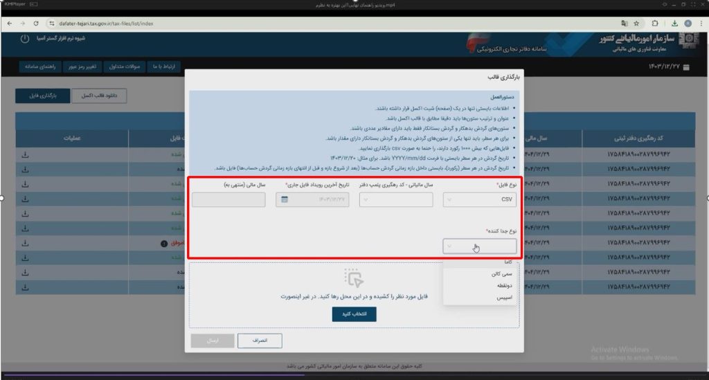 در این مرحله مؤدی فایل مورد نظر خود را بارگذاری میکند .برای بارگذاری موفق، رعایت نکات زیر را در نظر داشته باشید: